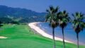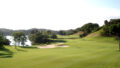 コースから望む雄大で波静かな周防灘。名物ホールは8番ホール、パー3。広い水平線、海に浮かぶピンフラッグ、爽快感と開放感、山と海の空気感の中でのプレー。