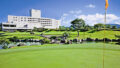 総距離7,000ヤードを超える全18ホールの比較的フラットなコースは、緑あふれる黒松林により美しくレイアウトが施され、各ホールは松林によってセパレートされています。乗用カートのフェアウェイ乗り入れが可能ですので、初めてでも快適にプレーを楽しめます。アウトコースは、PAR5のロングホールから始まり、池越えやドッグレッグなどドラマチックな展開が期待できる戦略的なホールが続きます。なかでも、7番のロングホールは、松の木がフェアウェイにせり出しているため、ティーショットは中央を狙いでいき、グリーン周りでは右サイドの大きなバンカーを避け、手堅くグリーン中央か左横からのアプローチが賢明です。ニアピン推奨ホールの2番は、ワンオンも狙えるショートホールで、海岸線にあることから、海風をどう読むかがスコアメイクの決め手となります。インコースは、ホテル「シェラトン・グランデ・オーシャンリゾート」が目の前にそびえ立ち、ホテルに向かって打つティーショットが印象的な11番は名物ホールのひとつとなっています。
